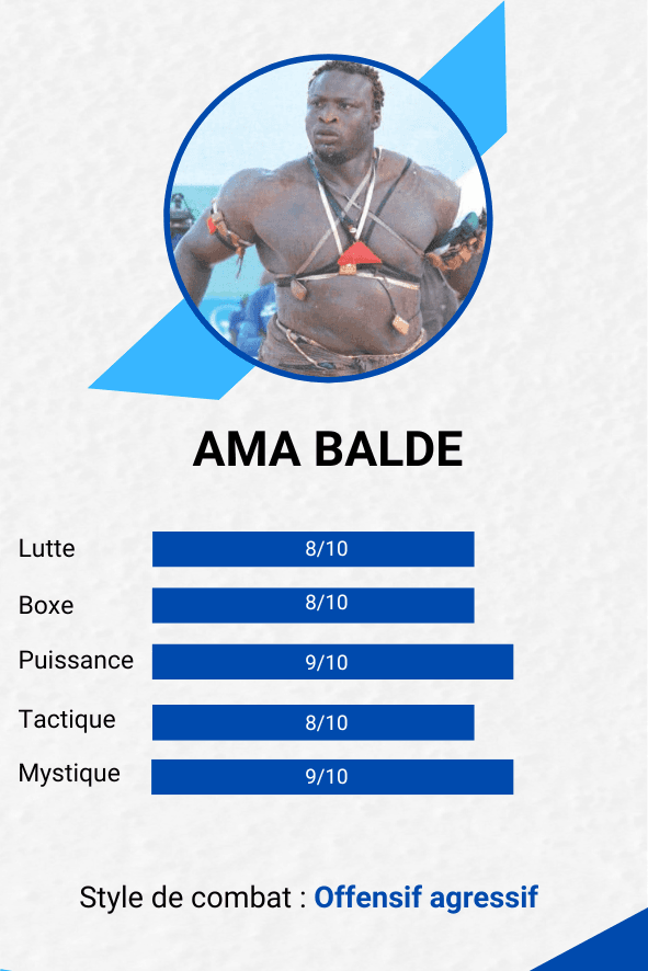 - Ama Balde : Onun için bilinir agresif hücum tarzıRakiplerini yormak için güçlü ve sürekli saldırılara güveniyor. Karizması ve mistik aurası, destekçilerini harekete geçiren ve ona psikolojik avantaj sağlayabilecek faktörlerdir.