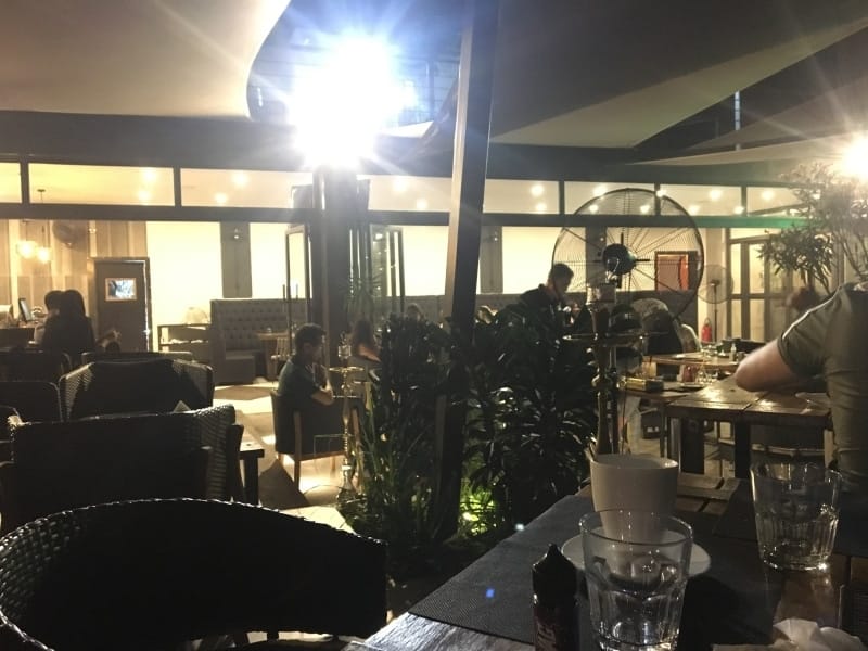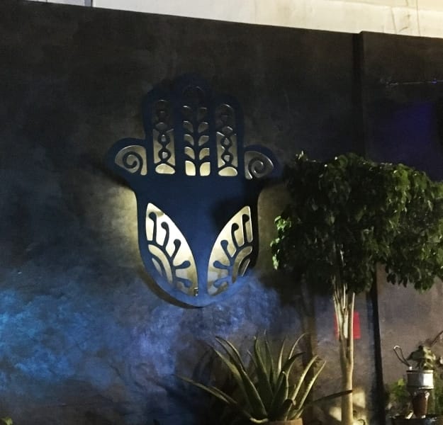 Daha çok vakit geçirdiğimiz terasta ise firmanın logosunu görebiliyoruz. restoran Fatima'nın Eli, aynı zamanda Fatima'nın Eli veya "Khomsa" olarak da adlandırılır. Mobilyaların kalitesi birinci sınıf: Chesterfield tarzı kanepe, iyi yapılmış ahşap masa, dokuma koltuk vb. ve her şey resimle uyum içindedir. Spor ve teknoloji tutkunları için WIFI ve büyük ekran TV mevcuttur.
